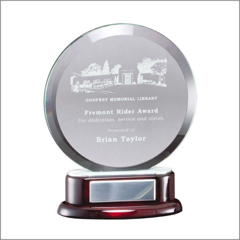 (M)GL17 Circle Glass W/ Rosewood Base 6 1/4″ X 7 3/4″