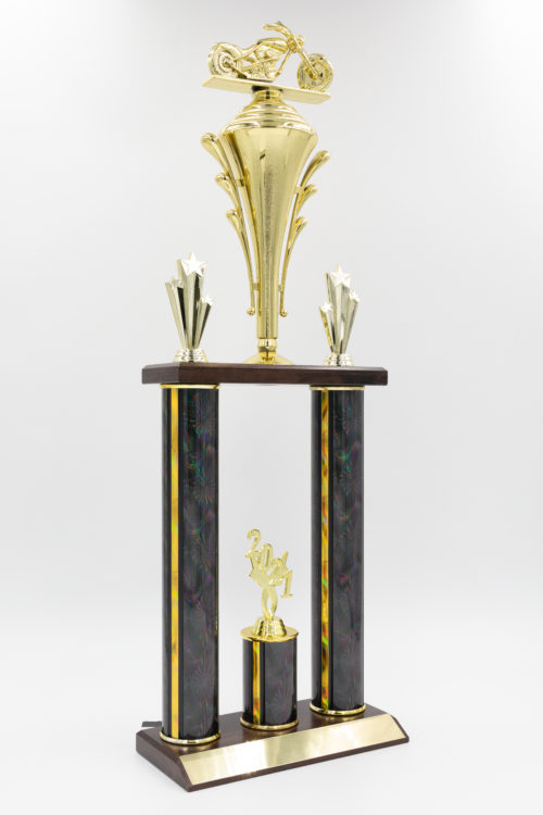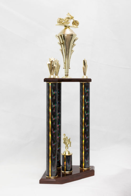 CP608B GOLD CUP WITH FIGURE ON BLACK BASE 23.5″