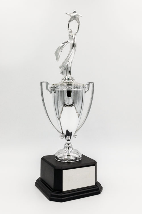 CP607A Silver Cup with Figure on Base18.5″