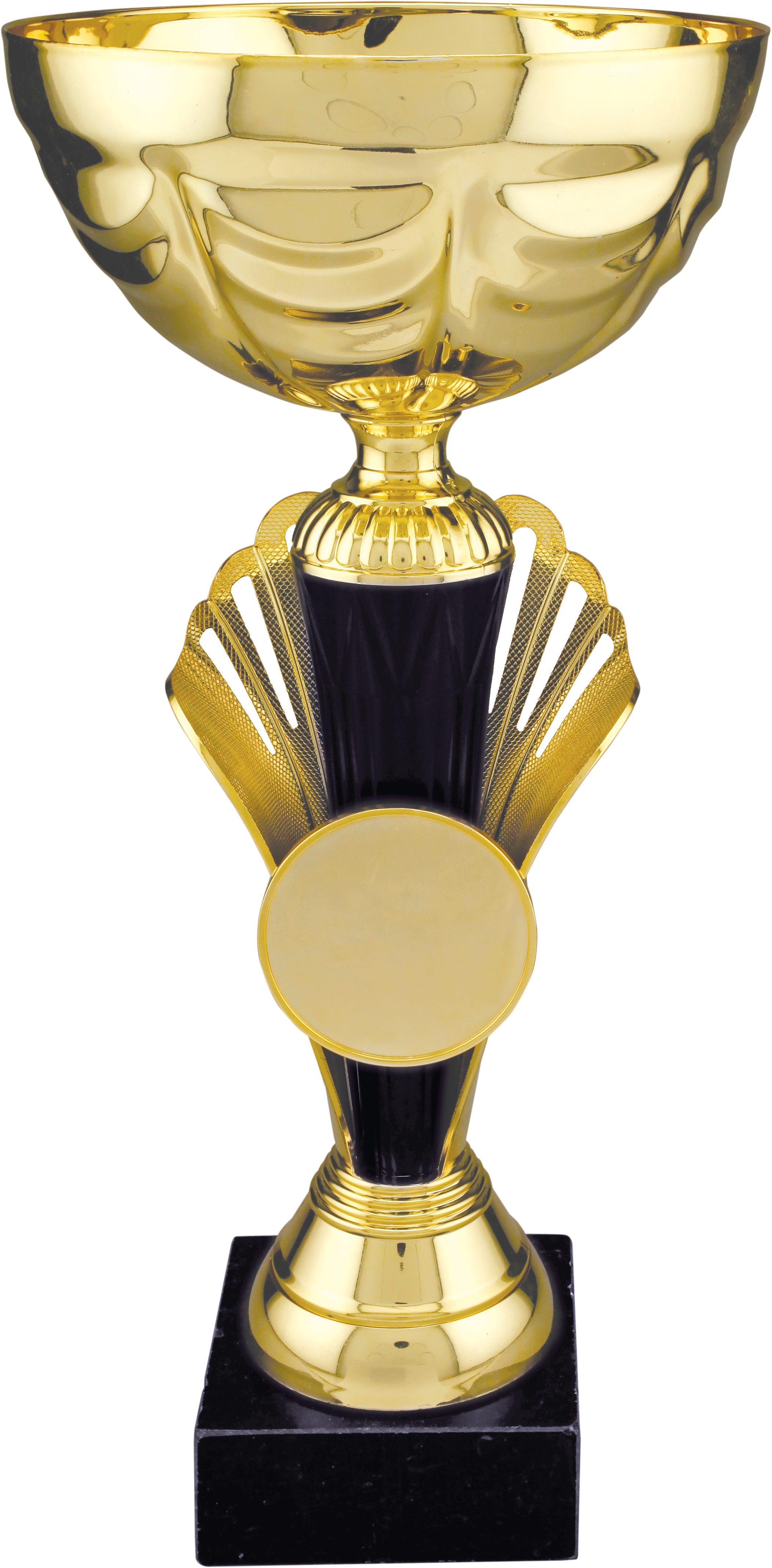 ASSEMBLE CUP METAL GOLD/BLACK ON BLACK MARBLE BASE 12″ WEIGHT-2.300 LB
